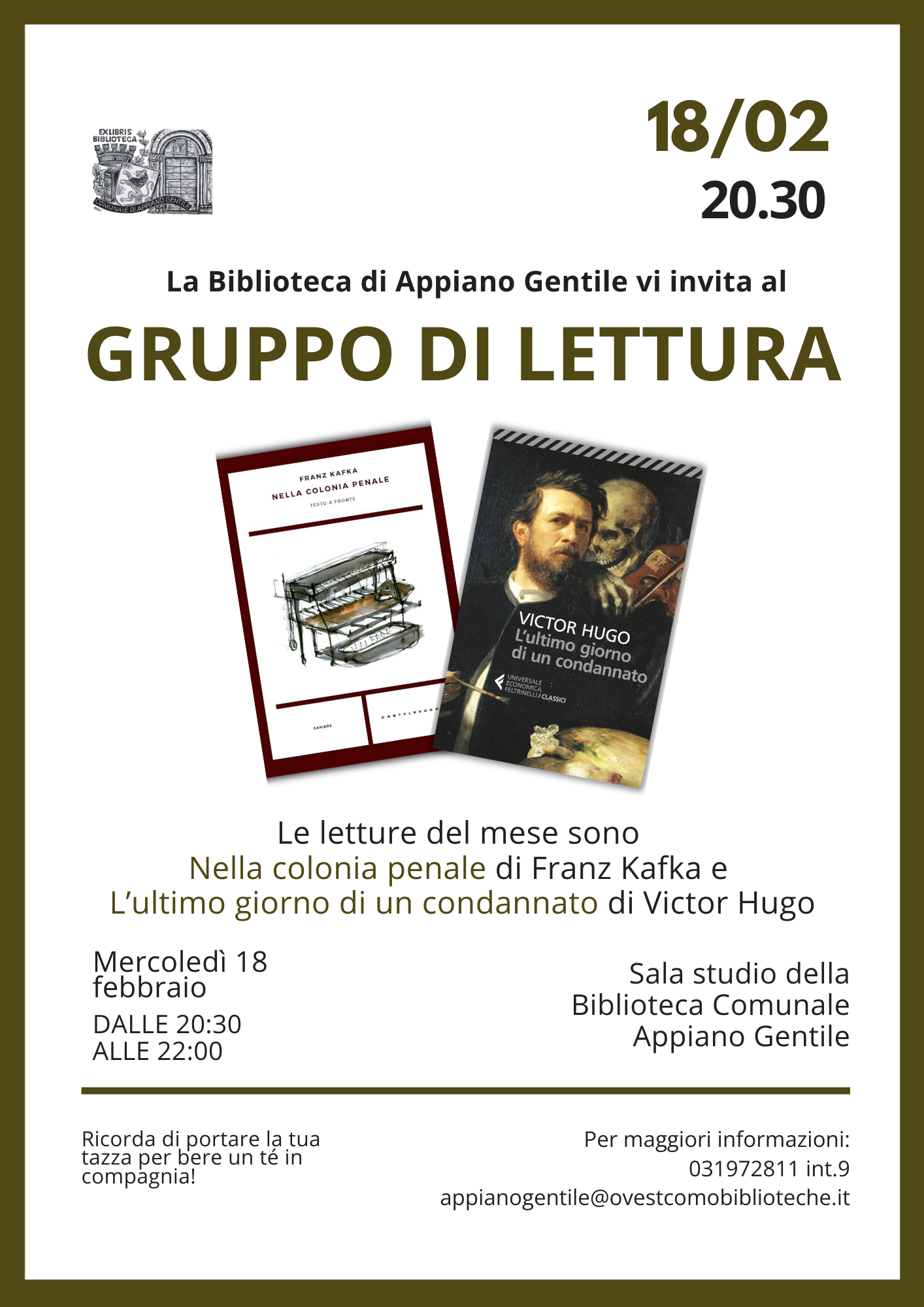 Mercoledì 18 febbraio a partire dalle 20.30 presso l'aula studio della biblioteca.